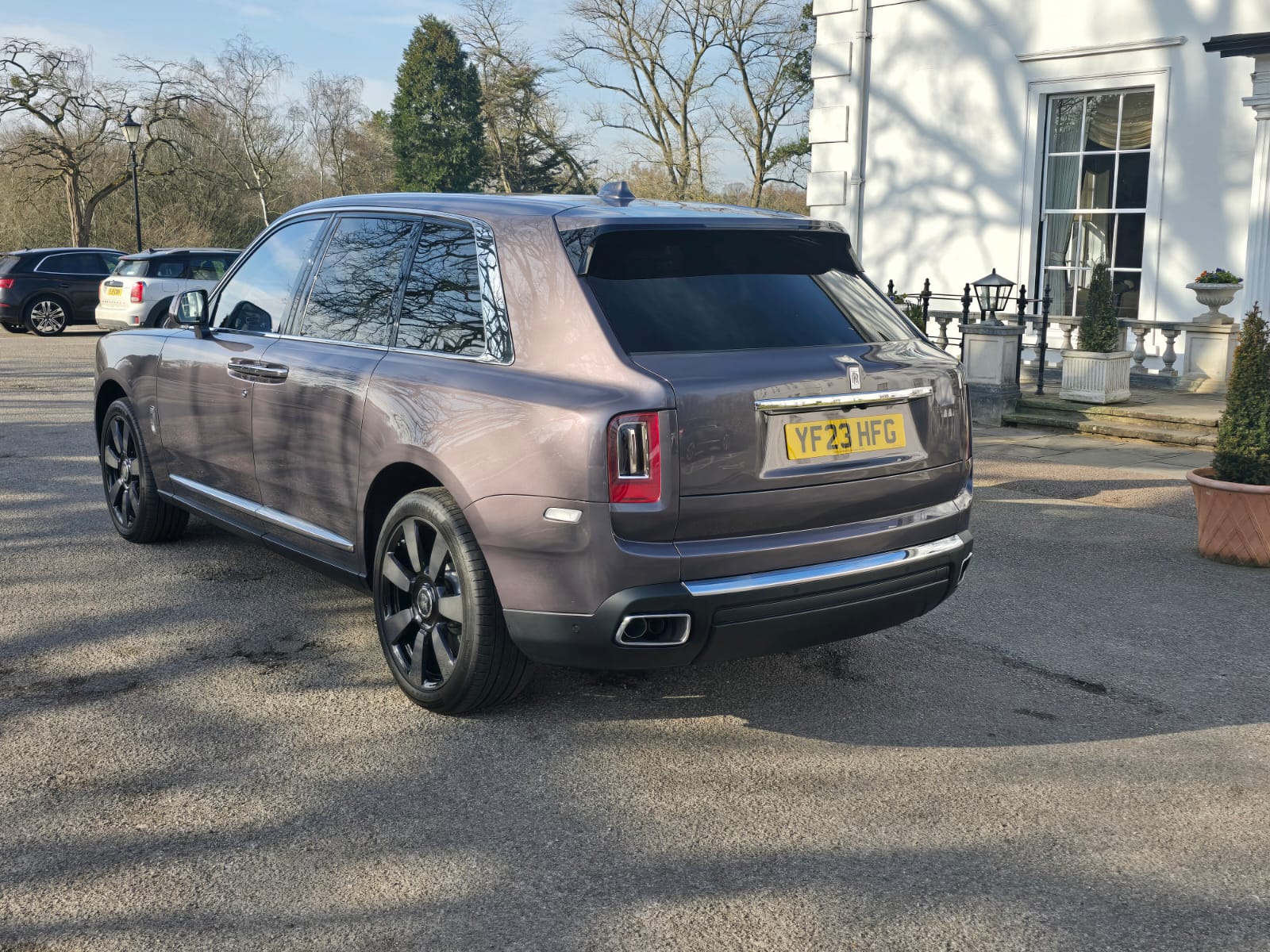 With its bold yet refined stance, the Cullinan makes an unmistakable statement on the road. The iconic Pantheon grille and striking LED headlights accentuate its powerful and elegant silhouette.